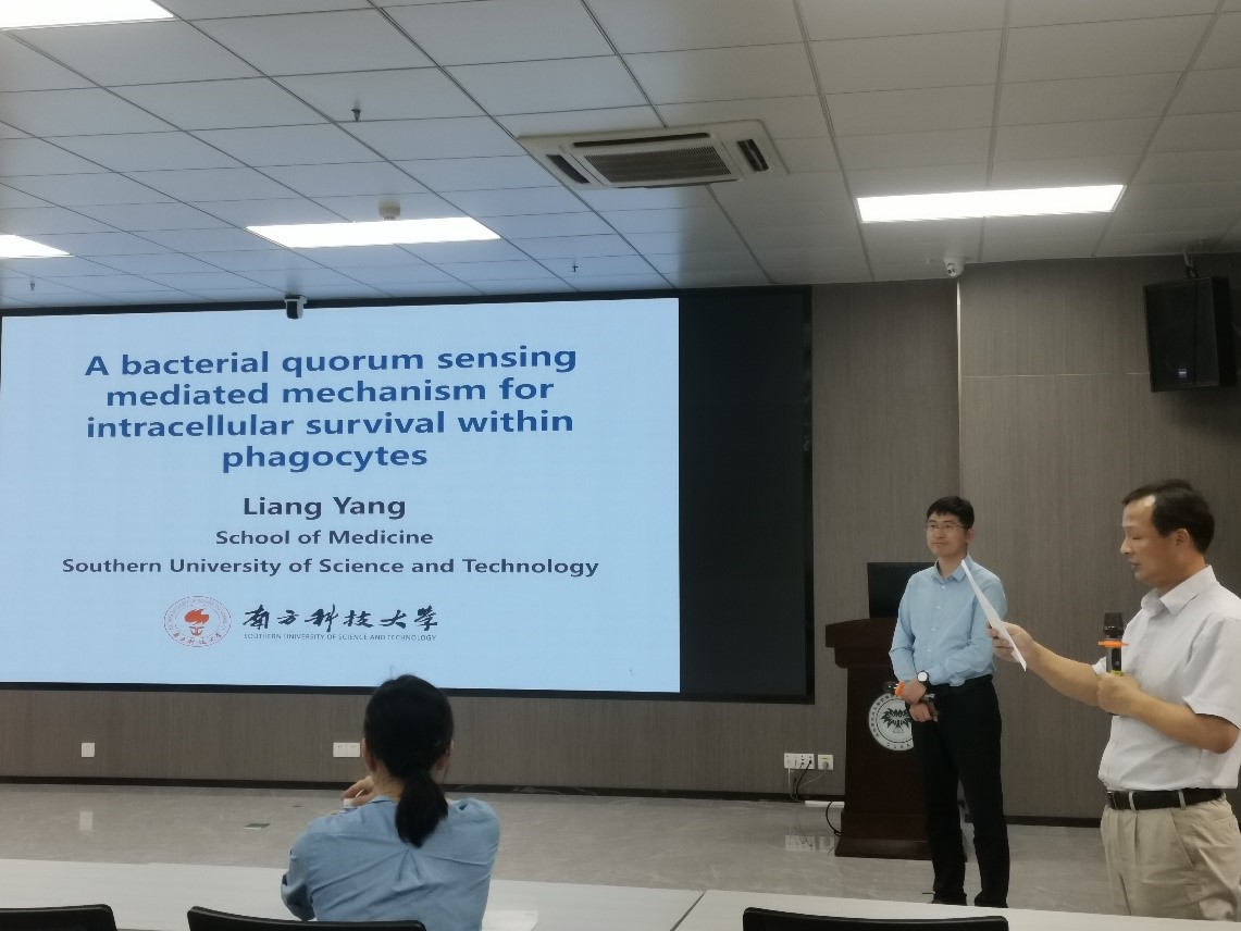 杨亮教授作了“A bacterial quorum sensing mediated mechanism for intracellular survival within phagocytes”的报告。报告以生命的起源引入主题,介绍了人类与细菌的关系——细菌生物被膜在细菌感染人类过程中的作用机制。介绍了目前全球耐药菌的严重状况,以及细菌生物被膜在细菌耐药中的重要角色。