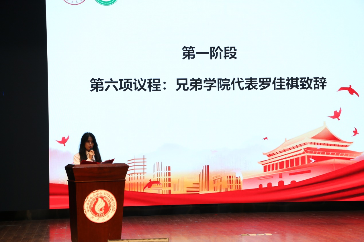 校研究生会主席团代表杨安琪、文学院研究生会代表罗佳祺分别上台致词,表达了他们对本次学生代表大会的竞选者寄予厚望,以及对本此活动取得圆满完成的殷切希望。