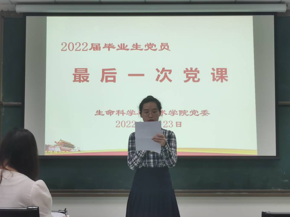 随后,院党委委员、团委书记周嫱宣读《院党委致2022届毕业生党员的一封信》,希望毕业生党员一要不忘初心、砥砺前行;二要摆正心态、迎接挑战;三要牢记身份、落实组织;四要感恩时光、文明离校。