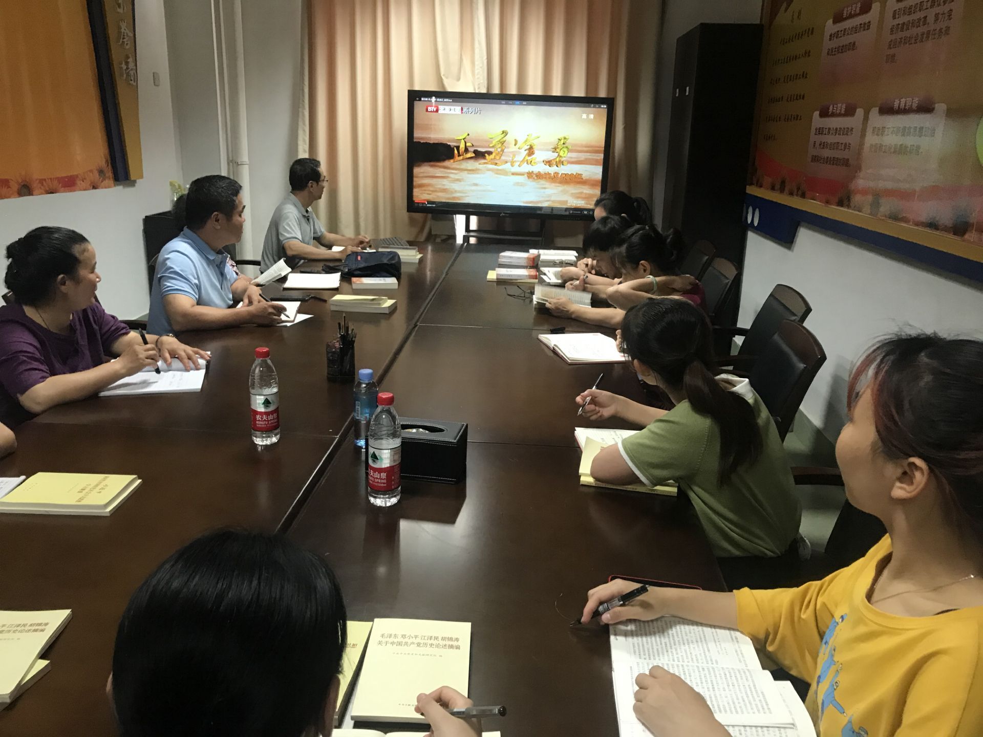 莫柏林书记带领大家观看了《正道沧桑——社会主义500年》“伟大转折”专题片。观看后,莫书记讲述了党的十一届三中全会是在党和国家面临向何处去的重大历史关头召开的,它确定了中国走改革开放的道路,确定了走中国特色社会主义道路,认真纠正了“文化大革命”中以及以前的“左”倾错误,确定了解放思想、开动脑筋、实事求是、团结一致向前看的指导方针,把党和国家工作中心转移到经济建设上来、实行改革开放的战略性决策。邓小平同志1992年的南方谈话,更加坚定了全党要统一思想、排除一切干扰,坚定不移地走中国特色社会主义道路。所以说,这次会议实现了新中国成立以来我们党历史上具有深远意义的伟大转折,开启了我国改革开放历史新时期。