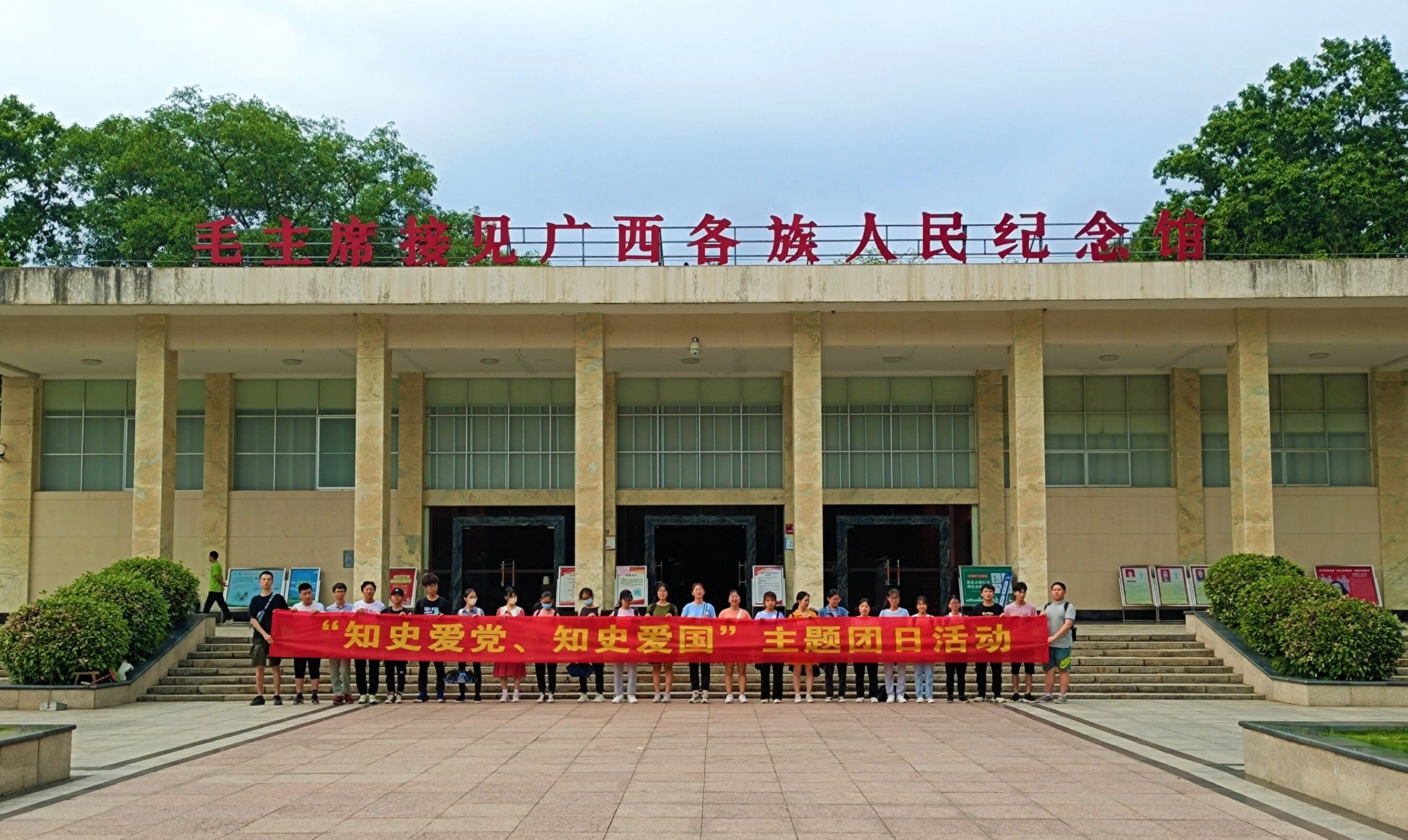 团委学生会主席李辰昊带领第三组的同学来到南宁人民公园革命烈士纪念碑进行党史学习。在纪念碑下,同学们诵读碑文,学习革命先辈的精神,以此缅怀先烈。随后,同学们来到了毛主席接见广西各族人民纪念馆,在纪念馆中,同学们浏览了毛主席在南宁的相关事迹及文献,回顾了毛主席接见广西各族人民代表的亲切问候以及对建设壮美广西的美好展望。