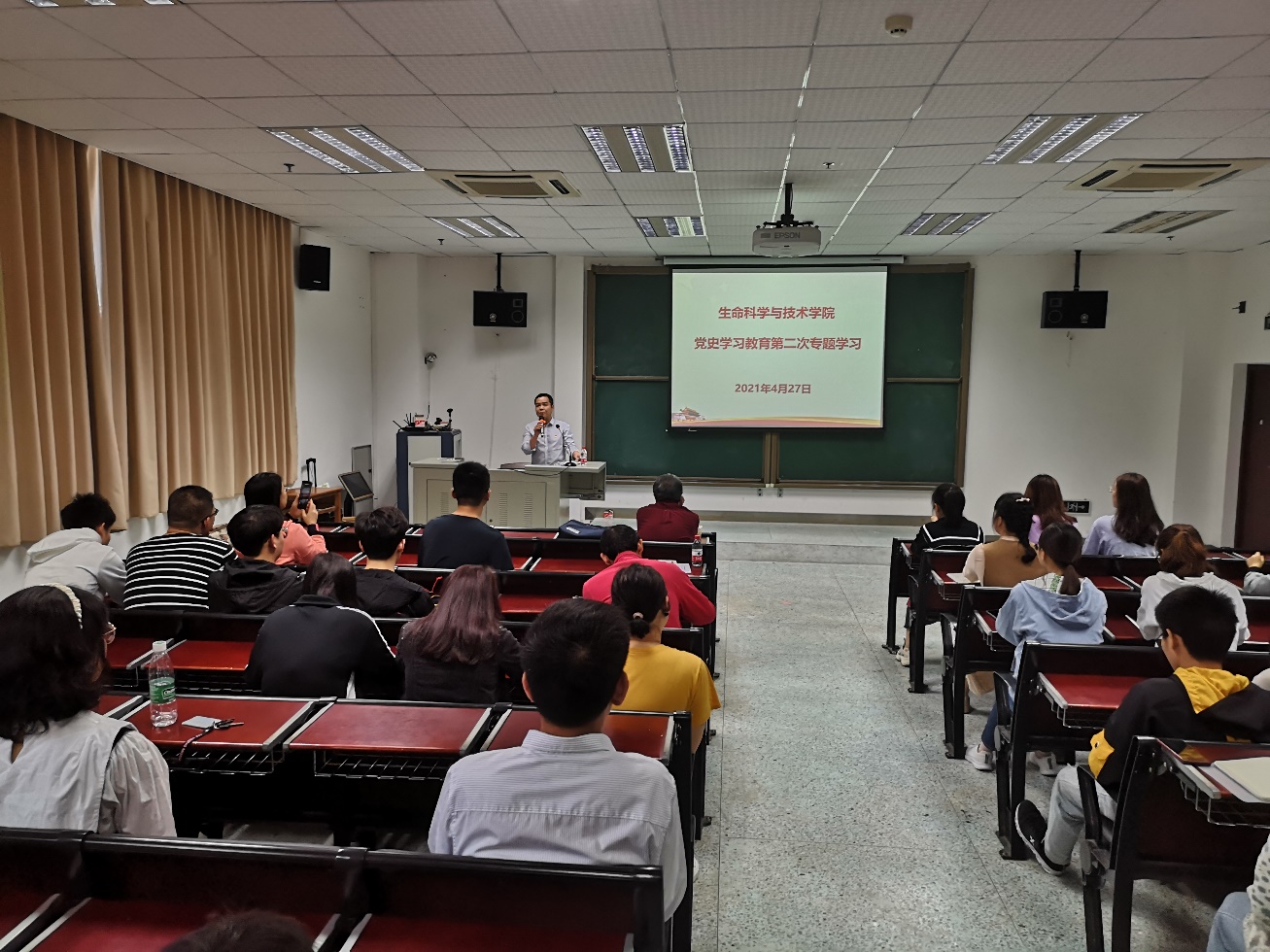 为深入贯彻《广西大学关于在全校开展党史学习教育的实施方案》精神,beat365在线唯一官网于2021年4月27日下午召开党史学习教育第二次专题学习会,围绕“社会主义革命和建设时期历史”专题展开学习研讨。学院全体教工党员以及部分学生党员共80余人参加了学习活动。
