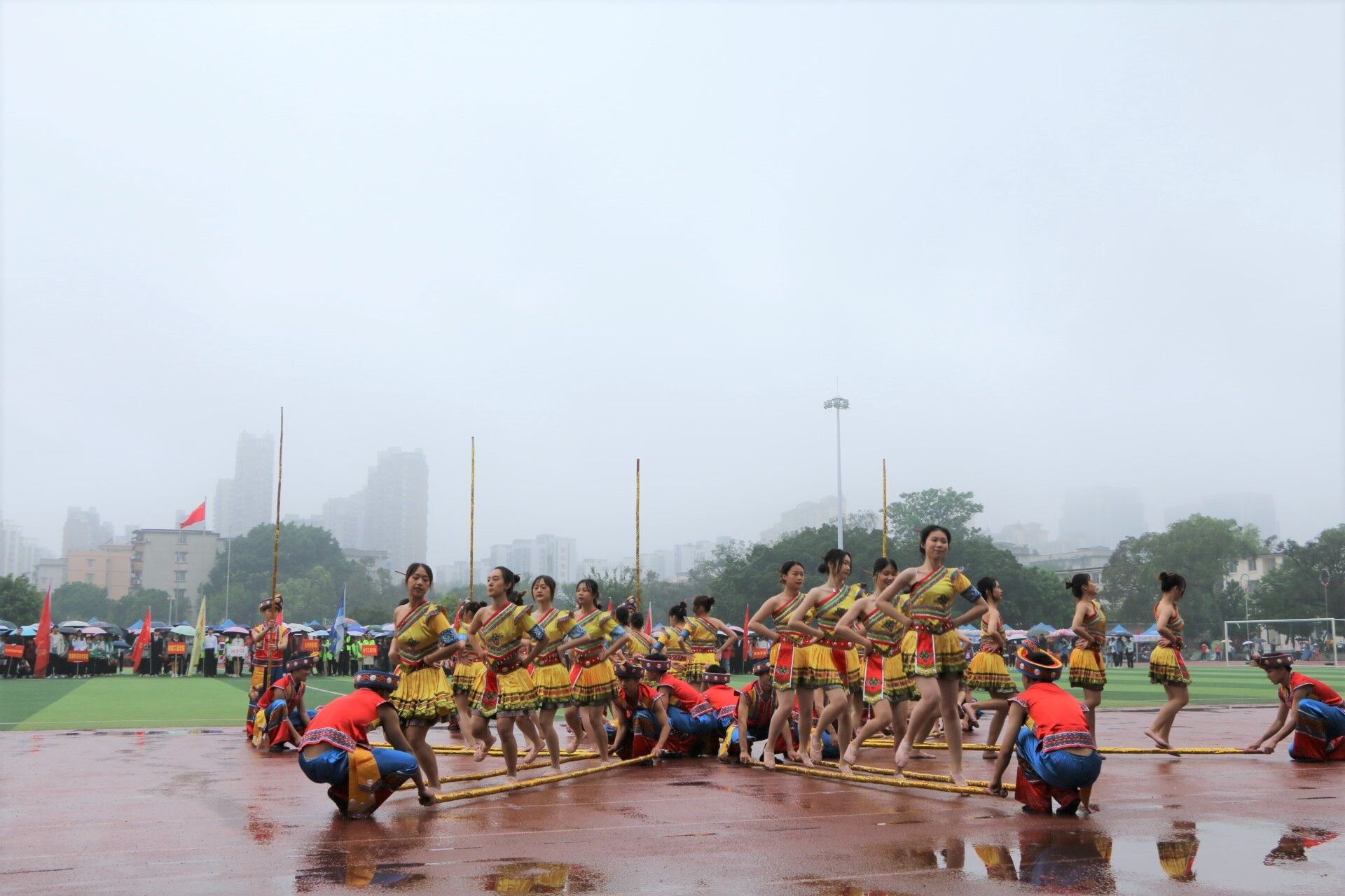 “唱支山歌给党听,我把党来比母亲”,随着上《唱支山歌给党听》的歌声响起,同学们嘹亮的歌声回荡在校园,同学们用精彩的舞狮、竹竿舞以及由各学院100名代表带来的民族舞蹈共同迎接党的百年诞辰,迎接“三月三”民族传统文化节日。