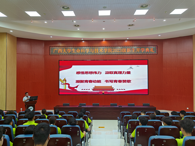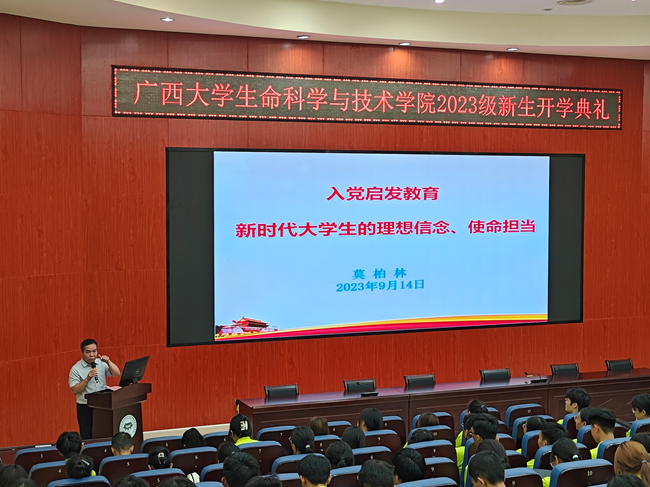 2023年9月14日上午,院党委书记莫柏林在圆形报告厅以《感悟思想伟力,凝聚青春动能,书写青春赞歌》为题,为学院2023级全体新生作主题报告。莫柏林书记从2022级新生入学谈起,疫情期间的开学典礼都是分班级在不同的教室进行,而现在我们能济济一堂。三年抗疫,经过艰苦卓绝的努力,我们战胜了前所未有的困难和挑战,最大程度守护了人民生命安全和身体健康,最大限度减少了疫情对经济社会发展的影响,中国答卷经得起历史检验,是“伟大抗疫精神”的集中体现。接着莫书记向同学们讲解了中国共产党精神谱系的具体内容,他指出,这些精神集中彰显了中华民族和中国人民长期以来形成的伟大创造精神、伟大奋斗精神、伟大团结精神、伟大梦想精神,彰显了一代又一代中国共产党人“为有牺牲多壮志,敢教日月换新天”的奋斗精神。希望当代大学生要坚持从党的精神谱系中汲取青春力量,真切地感悟个体与国家民族命运的紧密联结,从而树牢远大的理想信念,并矢志不移为之奋斗。莫柏林书记最后阐述了不同历史时期中国青年的使命担当,带领同学们深入学习领会习近平总书记青年观,号召同学们胸怀理想,志存高远,勇于担当,珍惜韶华,踏实躬行,练就本领,自觉争做中国特色社会主义的坚定信仰者和忠实实践者,为实现中国梦汇聚强大青春能量。