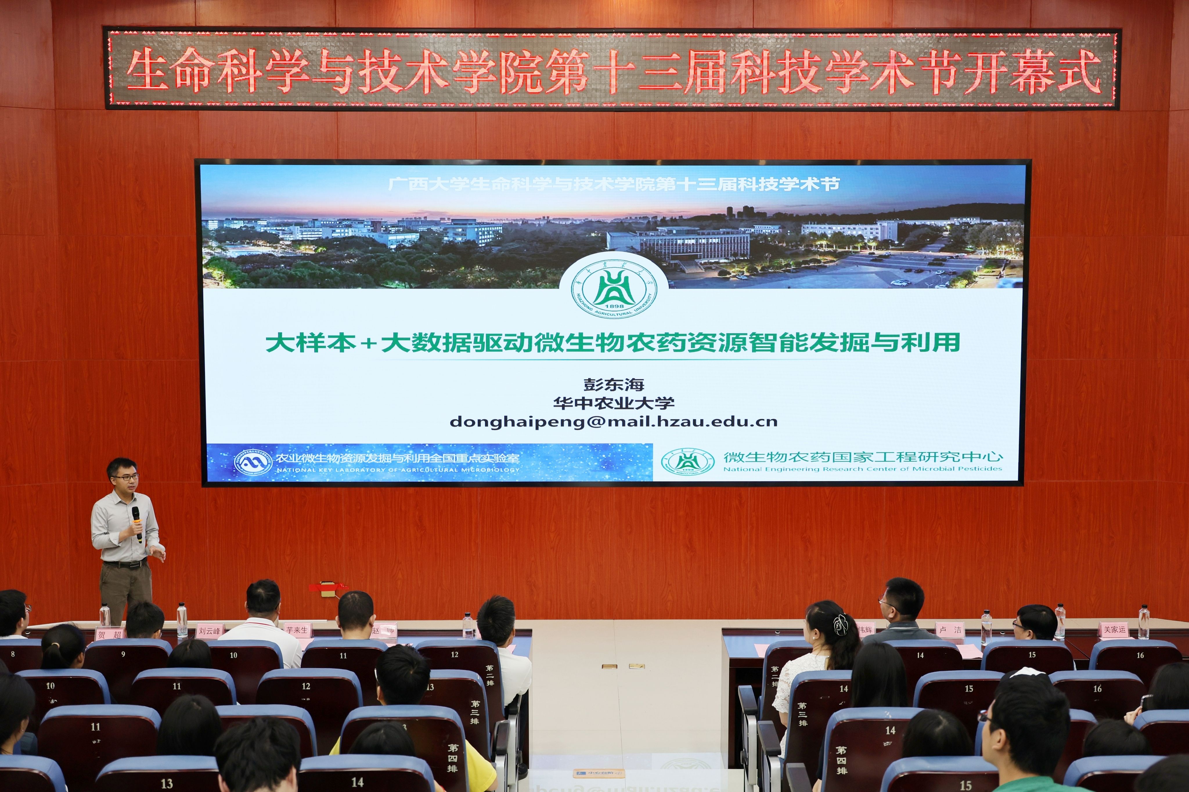 4月20日,beat365在线唯一官网第十三届科技学术节在学院圆形报告厅正式开幕。华中农业大学教授彭东海,我院党委书记刘培军,院党委副书记、副院长李伟辉,副院长赵帅、卢洁、芋来生,生物技术系主任刘云峰,学工组辅导员以及学生代表300余人参加此次开幕式。开幕式由院党委副书记覃文月主持。