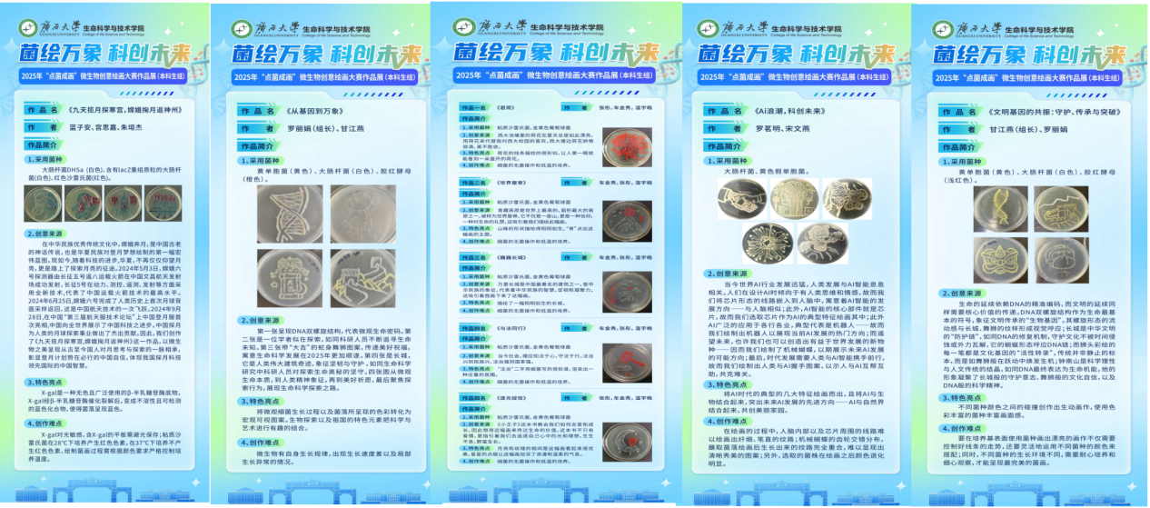 为深入学习贯彻党的二十届三中全会精神和全国教育大会精神,进一步弘扬“创新创造、奋勇争先、全面一流”的广西大学“双一流”精神,引导和激励全院学生提高学术创新能力,营造浓厚的科技创新氛围,我院于2025年4月-6月成功举办第十三届科技学术节。本届科技学术节以“生命之光,科创未来”为主题,开展了生物知识竞赛、“点菌成画”微生物创意绘画大赛、青荷学术沙龙、实验技能竞赛等子活动。